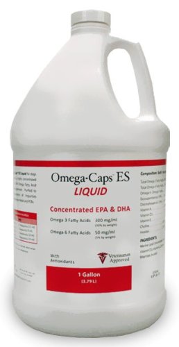 Omega-Caps ES LIQUID (1 Gallon) for dogs and cats, is a highly concentrated EPA and DHA Omega Fatty Acid fish oil supplement. Purified to ensure absence of impurities including heavy metals and PCBs. Recommended for a healthy skin and coat. May also help with joints, heart and brain function Ingredients: Marine Lipid Concentrates, Vitamin A, Vitamin D3, Vitamin E, Choline Bitartrate, Inositol Omega-Caps is manufactured in the USA and is made within an FDA and USDA approved facility following current Good Manufacturing Practice (GMP) Guidelines. Administration: Size of Pet Serving Up to 20 lbs. ½ Teaspoonful (2.5 ml) 21 to 60 lbs. 1 Teaspoonful (5 ml) 61 to 80 lbs. 2 Teaspoonsful (10 ml) Over 80 lbs. 3 Teaspoonsful (15 ml) Composition (per 1 ml) Total Omega 3 Fatty Acids 300 mg Total Omega 6 Fatty Acids 50 mg Omega 6: Omega 3 ratio 0.17 Eicosapentaenoic Acid (EPA) 156 mg Docosahexaenoic Acid (DHA) 104 mg Vitamin A 300 IU Vitamin D3 120 IU Vitamin E 5 IU Choline 300 mcg Inositol 200 mcg